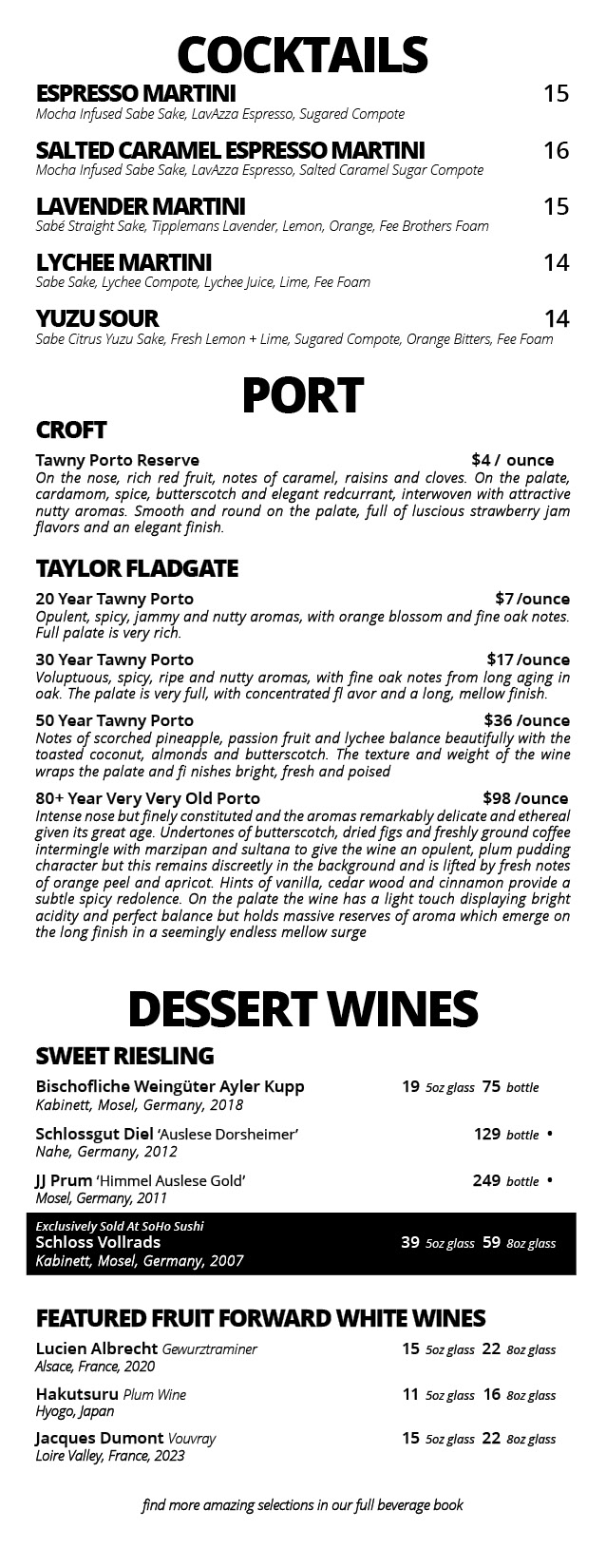 The Perfect Ending, Crafted In-House We believe the finale of your meal should be just as memorable as the first bite of sashimi. That’s why we are thrilled to introduce our new in-house dessert chef, Jasmine, dedicated exclusively to crafting incredible desserts right here at Soho Sushi.