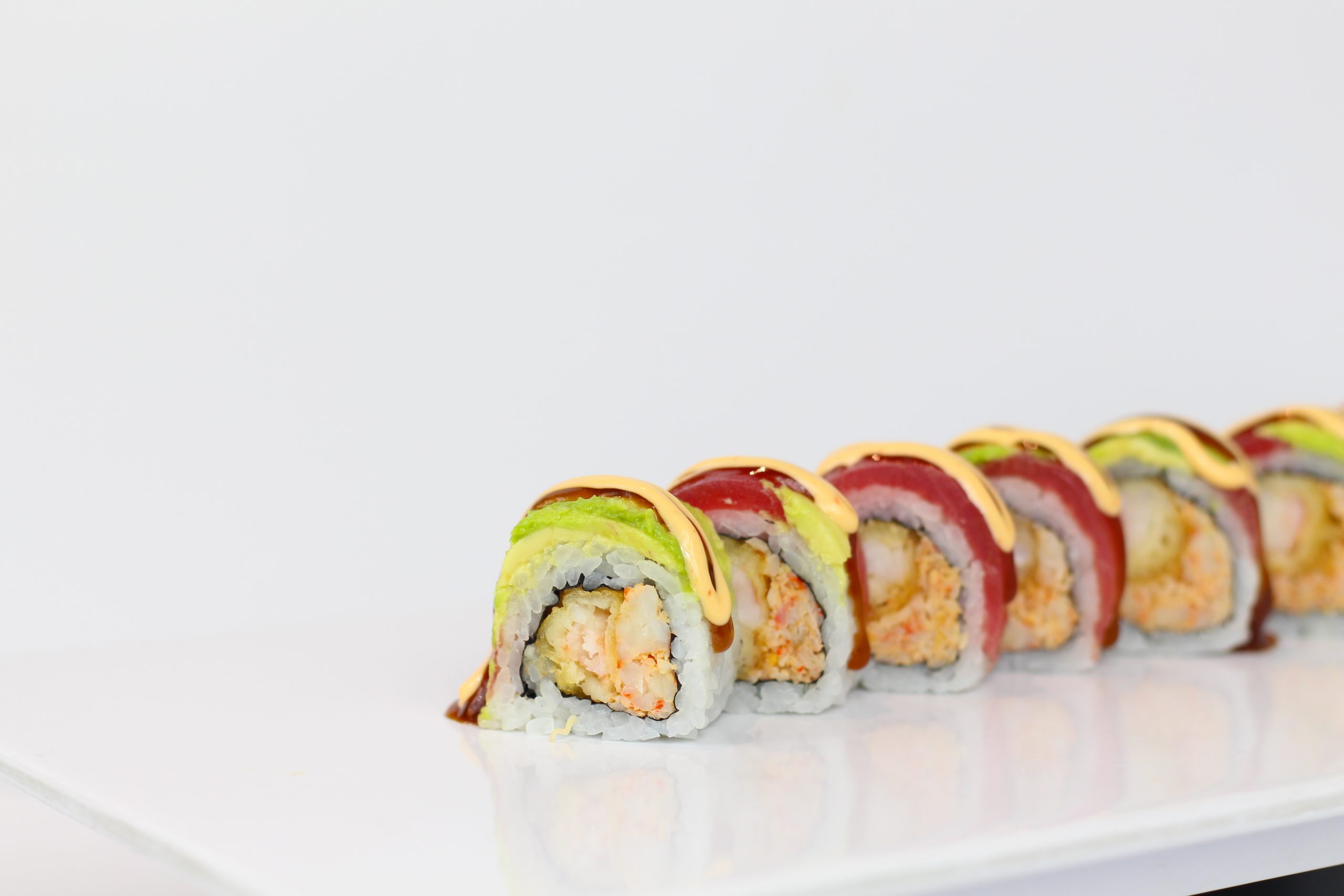 fried shrimp and lobster roll topped with tuna, avocado, spicy mayo and eel sauce
